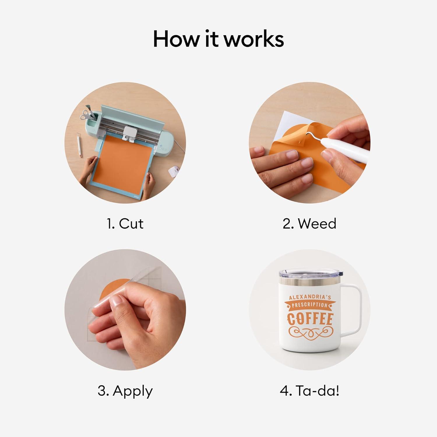 Take your DIY game up a notch with the Cricut Permanent Vinyl – a perfect long-lasting transfer vinyl that brings your crafts to life without getting worn out over time. Easily transfer your designs, labels, and stickers onto finished custom-decorative items. Just cut the pattern/figure stencil on the vinyl, weed away the excess, transfer it on to the transfer tape (sold separately), press down on the object of choice and burnish it with a scraper or credit card. Voila! Your design transfers seamlessly, and permanently, on to the object. The 12 in x 30 ft vinyl is easy to use and can transfer even the most intricate designs to a variety of smooth, non-textured surfaces with ultimate precision. It works with all Cricut Cutting Machines and makes your DIY projects fun and hassle-free. Be it lettering your mugs, cups, and bottles, creating signs for home and car, making custom labels for the kitchen, or even for outdoor use. It is all-weather resistant, fade-proof and dishwasher-safe so you can wash your mugs/containers multiple times and your vinyl design will still stick around. Available in a variety of colors.