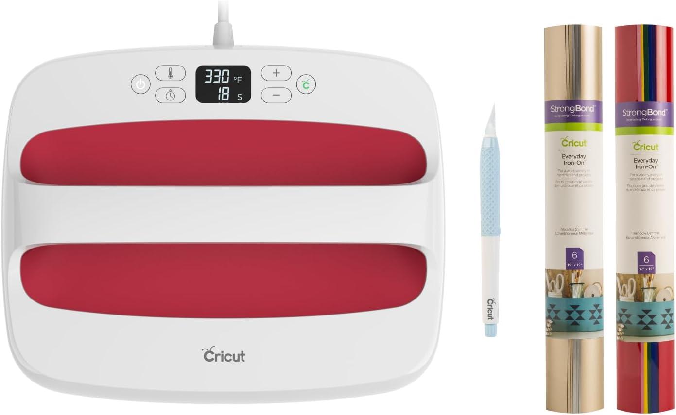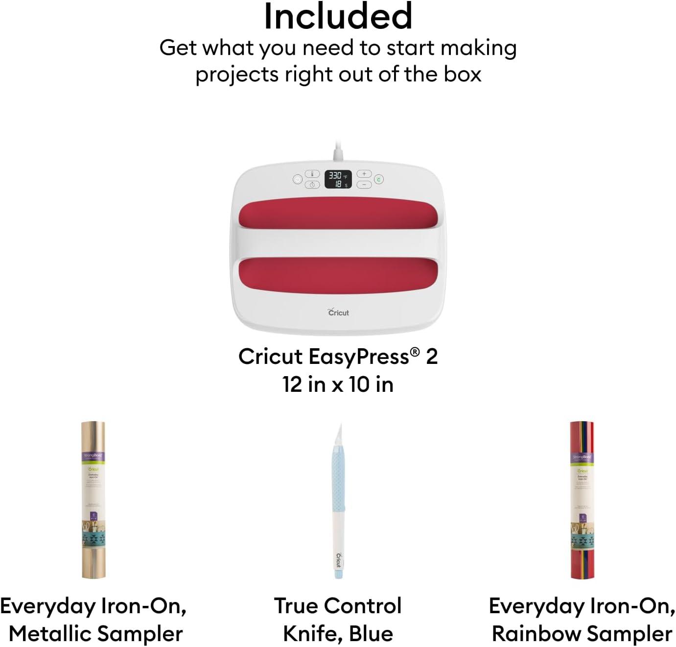 Take on just about any heat transfer project with Cricut EasyPress 2, your no-stress heat press. Combining the speed of a heat press and the convenience of an iron, Cricut EasyPress 2 gives you fast, effortless results that really last, even after repeated washes. The advanced the heat plate design reaches edge-to-edge heat up to 400 ºF (205 ºC). Eliminate guesswork with rigorously tested time and temperature settings for every project, apply heat, and when the beep sounds, you’re done! Helpful safety features include an insulated Safety Base and auto-shutoff feature. Cricut EasyPress 2 is lightweight and easy to store, and compatible with major brands of iron-on (HTV), Infusible Ink & sublimation products. An excellent complement to Cricut cutting machines.