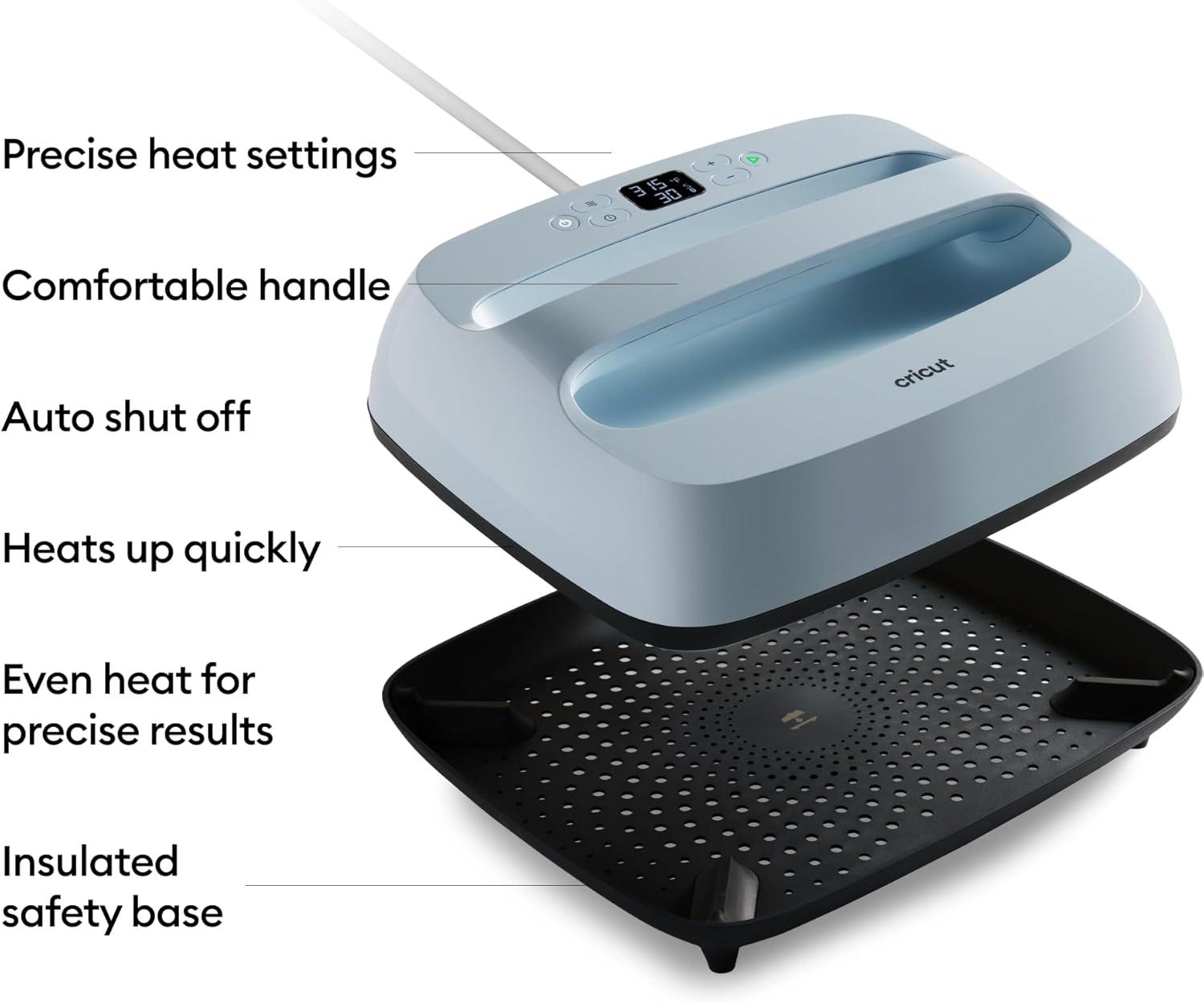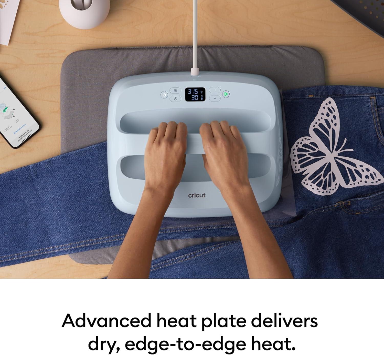 ADJUSTABLE TIME & TEMPERATURE — Control temperature up to 400 ºF (205 ºC) and set the timer manually or use the Cricut Heat app to send precise settings. Apply gentle pressure and release when you hear the beep.