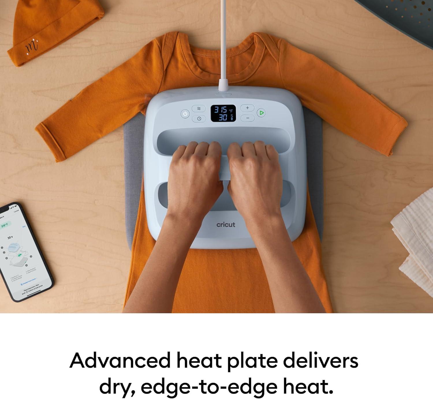 ADJUSTABLE TIME & TEMPERATURE — Control temperature up to 400 ºF (205 ºC) and set the timer manually or use the Cricut Heat app to send precise settings. Apply gentle pressure and release when you hear the beep.