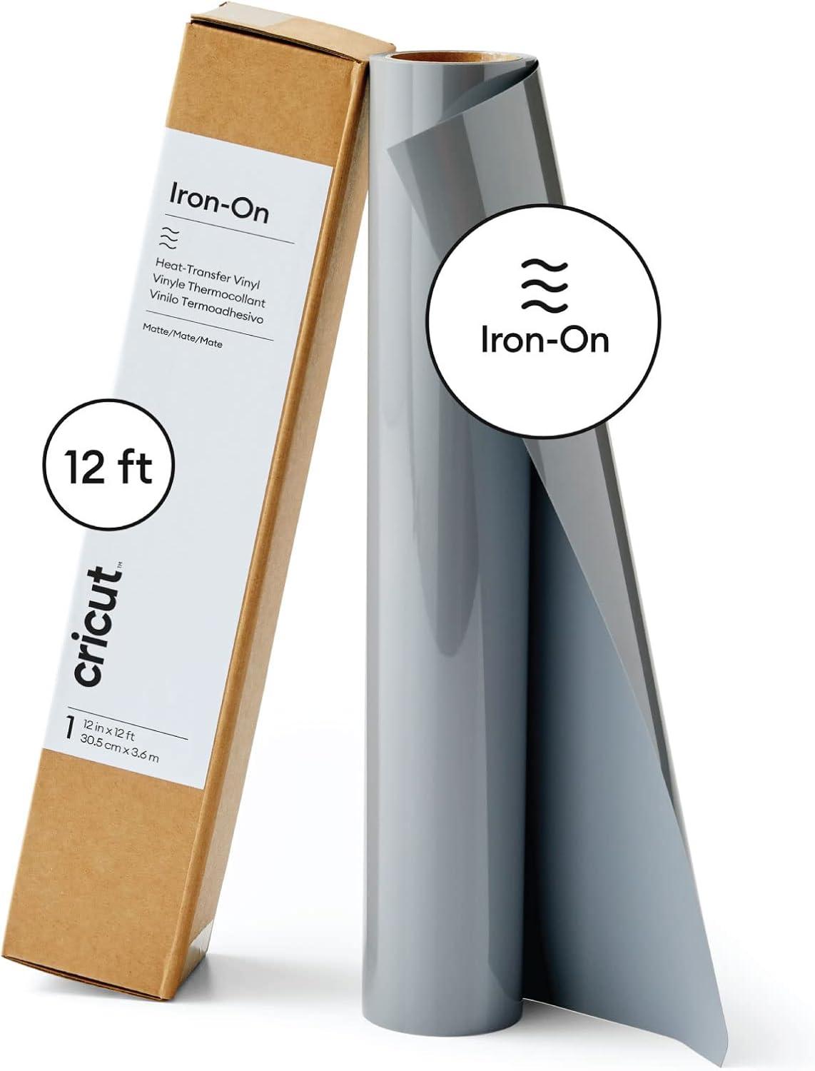 Cricut Everyday Iron On – 12” x 12ft – HTV Vinyl for T-Shirts – Use with Cricut Explore Air 2/Maker, StrongBond Guarantee, Outlast 50+ Washes, Black(Gray)