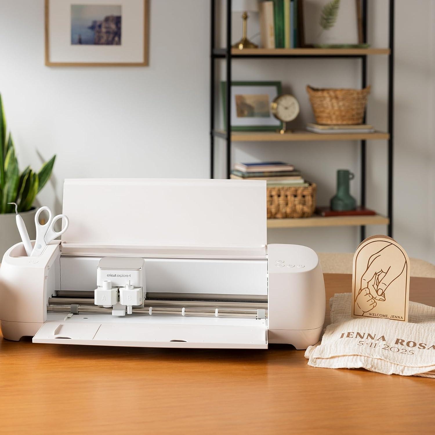 PRECISION CUTS 100+ MATERIALS: Cuts everything from the essentials of iron-on and vinyl to delicate paper and cardstock. The Explore 4 works with additional blades and tools to add pro-level effects such as scoring, writing, foiling, and more. The built in sensor recognizes and precision cuts around ink-jet printed images to create full-color stickers and more! Smart Materials work without a mat for faster and longer cuts.