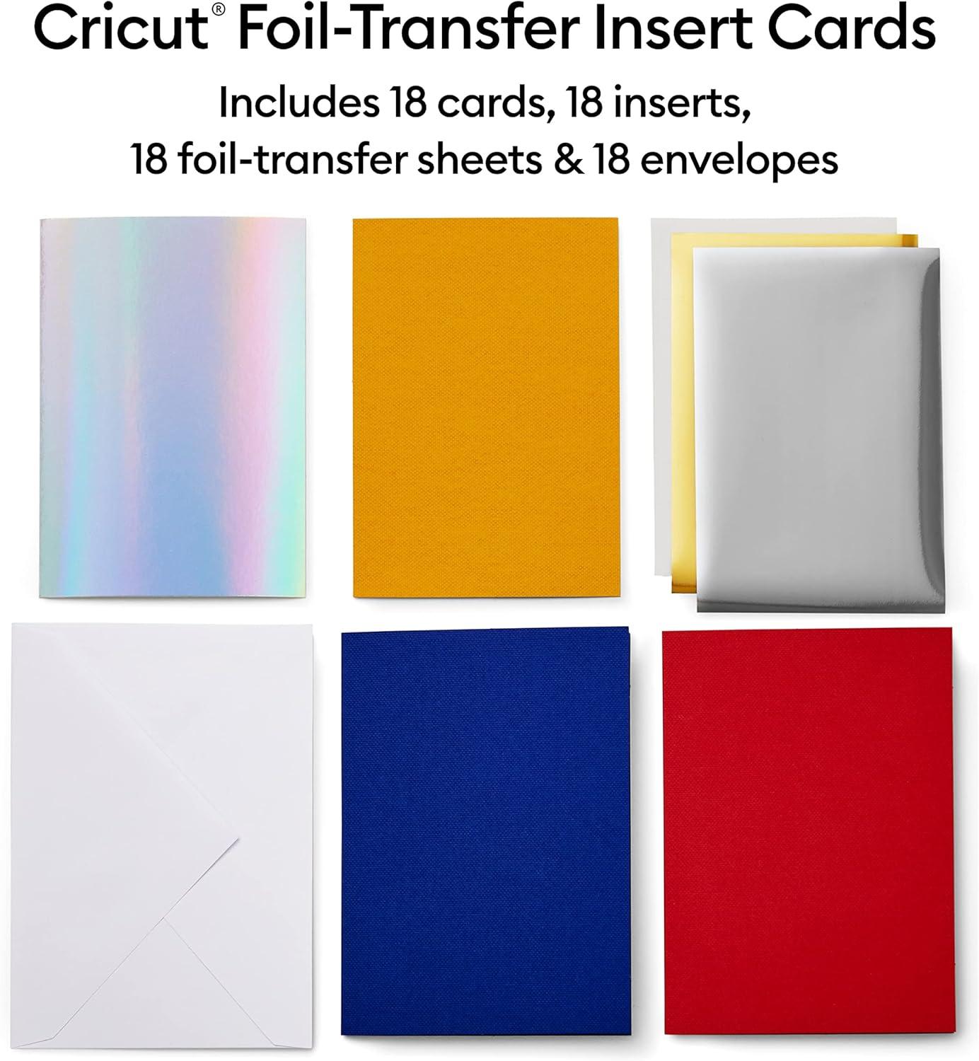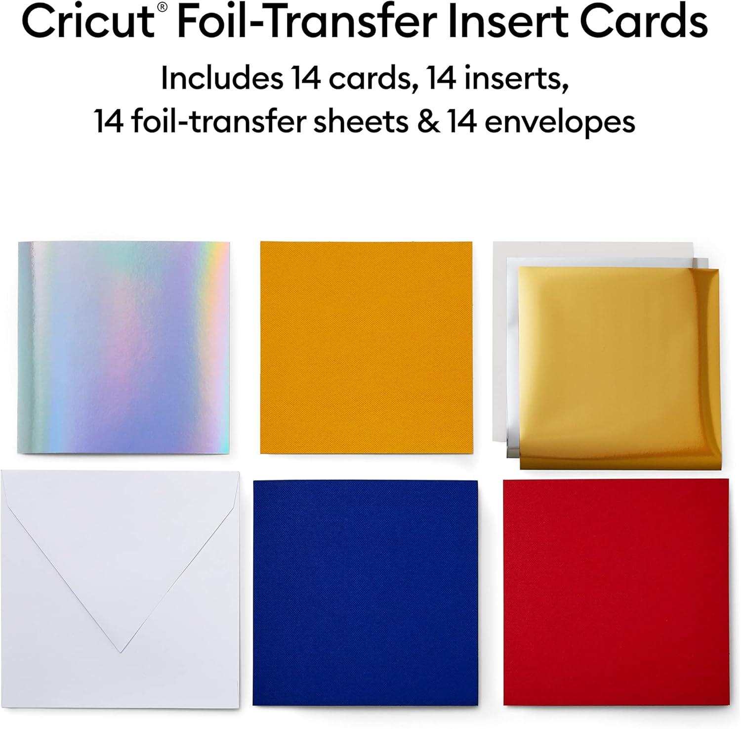 FUN & VERSATILE CARD-MAKING – Customize thank you cards, birthday cards or invites with the Cricut Foil Transfer Insert Cards – Celebration Sampler (S40). Includes shimmery easy-release foil transfer sheets allowing you to create any design of your choice