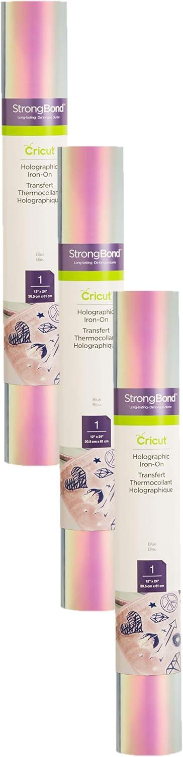 Cricut Holographic Iron On, Blue – 3-Pack of 2ft Rolls (12″x24″) – HTV Heat Transfer Vinyl for Shirts, Apparel, Hats & More – Compatible with Cricut EasyPress & Machines(Cobalt)