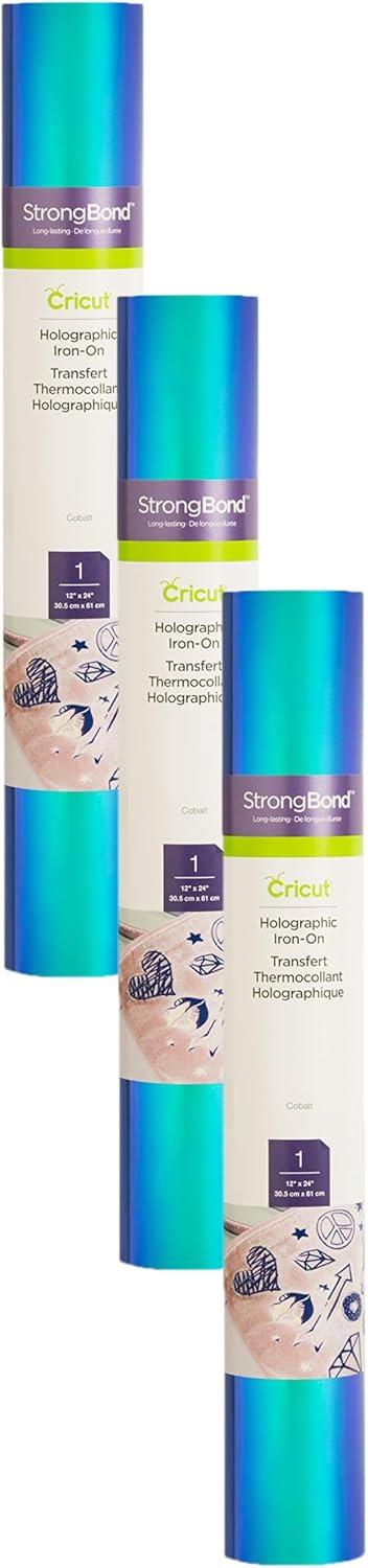 Cricut Holographic Iron On, Blue – 3-Pack of 2ft Rolls (12″x24″) – HTV Heat Transfer Vinyl for Shirts, Apparel, Hats & More – Compatible with Cricut EasyPress & Machines(Cobalt)