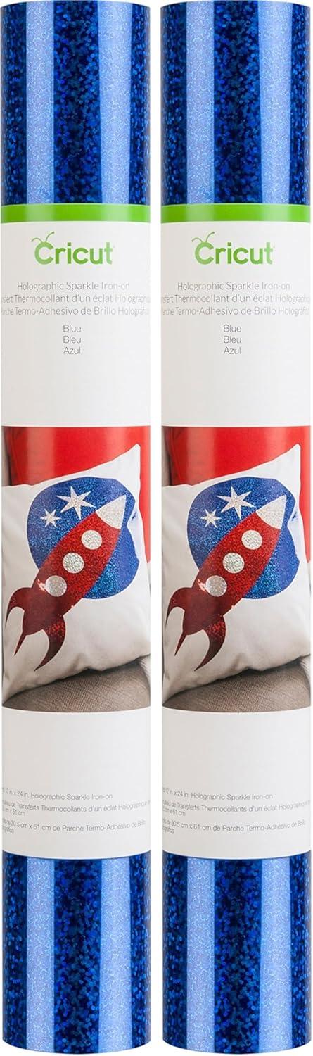 Cricut Holographic Sparkle Iron On, Blue - 2-Pack of 2ft Rolls (12"x24") - HTV Heat Transfer Vinyl for Shirts, Apparel, Hats & More - Compatible with Cricut EasyPress & Machines(Blue)