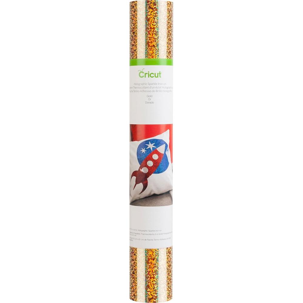 Cricut Holographic Sparkle Iron On, Blue - 2-Pack of 2ft Rolls (12"x24") - HTV Heat Transfer Vinyl for Shirts, Apparel, Hats & More - Compatible with Cricut EasyPress & Machines(Gold)