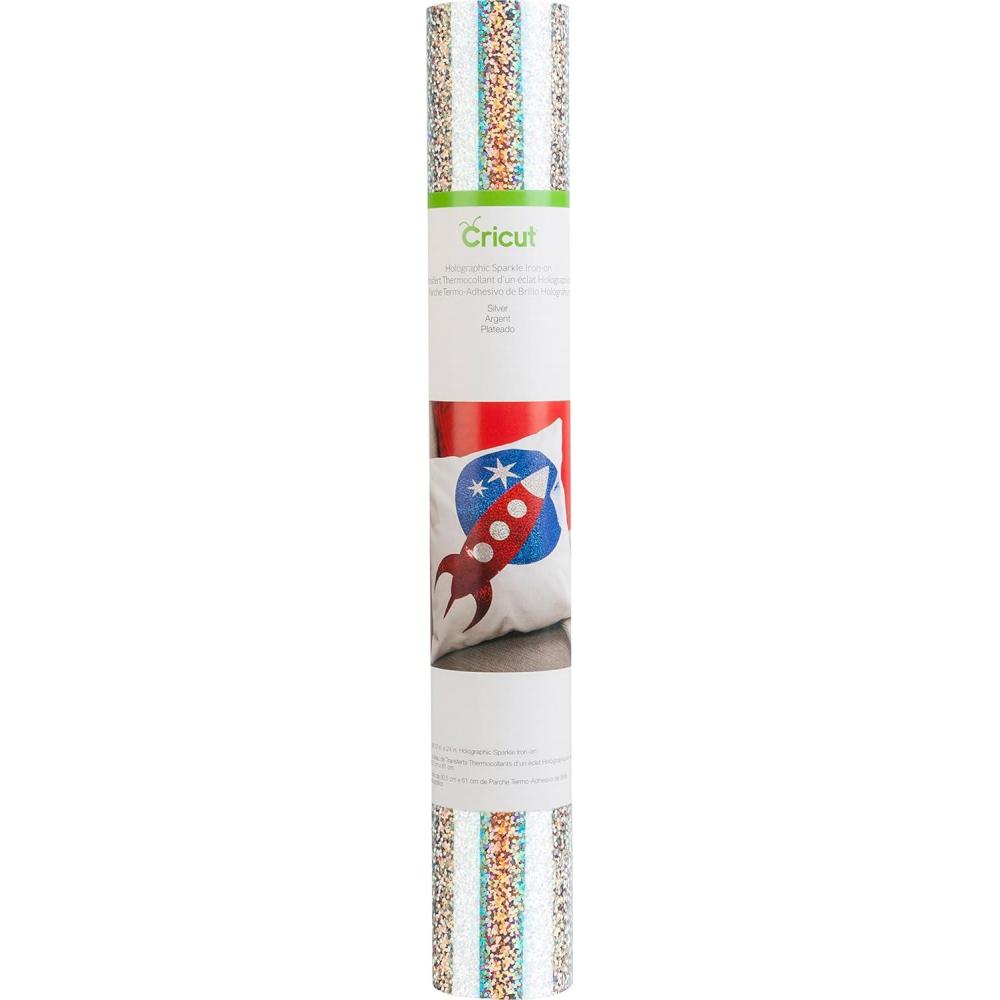 Cricut Holographic Sparkle Iron On, Blue - 2-Pack of 2ft Rolls (12"x24") - HTV Heat Transfer Vinyl for Shirts, Apparel, Hats & More - Compatible with Cricut EasyPress & Machines(Silver)
