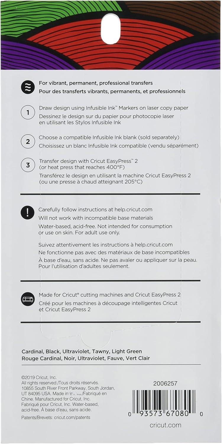 Infusible Ink is the next big thing in DIY crafts! Infusible Ink Markers, Pens, and Transfer Sheets produce vibrant pro-quality transfers that last a lifetime, adhering directly to the Cricut blank product of your choice. Infusible Ink is the first line of arts and crafts products of its kind. Use Cricut Infusible Ink Pens to customize a T-shirt, tote, or set of coasters. Create fun designs, business logos, and more. The materials you’ll need to create a unique design with Cricut Infusible Ink Pens are a Cricut Maker or Cricut Explore cutting machine, the Light Grip Machine Mat, Easy Press, Cricut Easy Press Mat, Cricut Blank (compatible with Infusible Ink), Heat Resistant Tape, laser copy paper, butcher paper, cardstock (80 lbs. white recommended), a lint-free cloth (for coaster blanks), lint roller (for apparel and tote blanks), scissors, tweezers, and Design Space software on your mobile device or computer. Be sure to mirror your image and follow the simple step-by-step process for the best results. It is important to note that if you are using Cricut Explore One, an accessory adapter is required for use with Pens. Cricut’s set of 5 Basic Infusible Ink Pens are intended for adult use only and are water-based and acid-free. Create a personalized gift or DIY creation for Christmas, a birthday, or any other special occasion. Design a keepsake with Cricut’s revolutionary line of Infusible Ink products.
