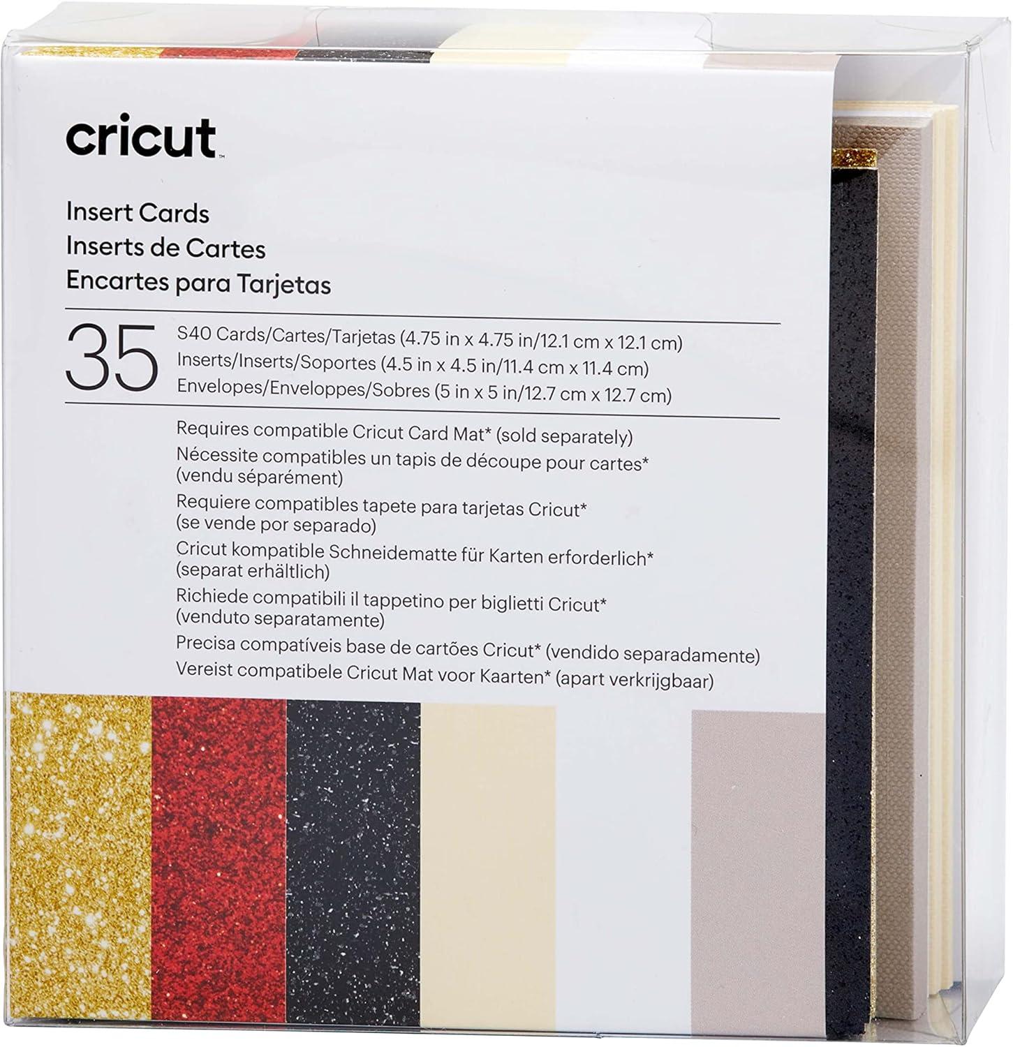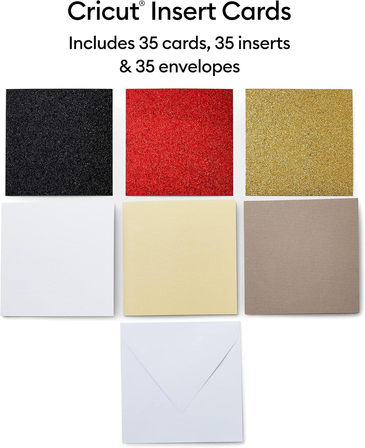 Making a custom greeting card or thank you card is now easy with the Cricut Insert Cards – Glitz and Glam Sampler (S40). Each pack contains 35 S40 Cards in Taupe (12), White (12), Cream (11); 35 Inserts in Black Glitter (12), Red Glitter (11), Gold Glitter (12) and 35 White Envelopes for designing and then elegantly sending out your greetings, invites and note cards. You can just pick your design, load the inserts onto the cards on the Cricut Card Mat (sold separately), and use the Cricut Maker, Cricut Joy, or Cricut Explore machines to get your desired design on the card. With these insert Cricut cards, you can cut out even the most intricate designs for your custom thank you cards, ceremony cards or invites. Also, these cards are completely glue-free, so no more sticky spots and no smudging from anywhere – just create custom cards neatly and quickly. Every time you craft a card you get an impeccable and flawless output. With the right Cricut Explore & Cricut Maker accessories (all sold separately), you can craft the most beautiful birthday card, thank you card, invitation cards, or any festive cards in a jiffy!