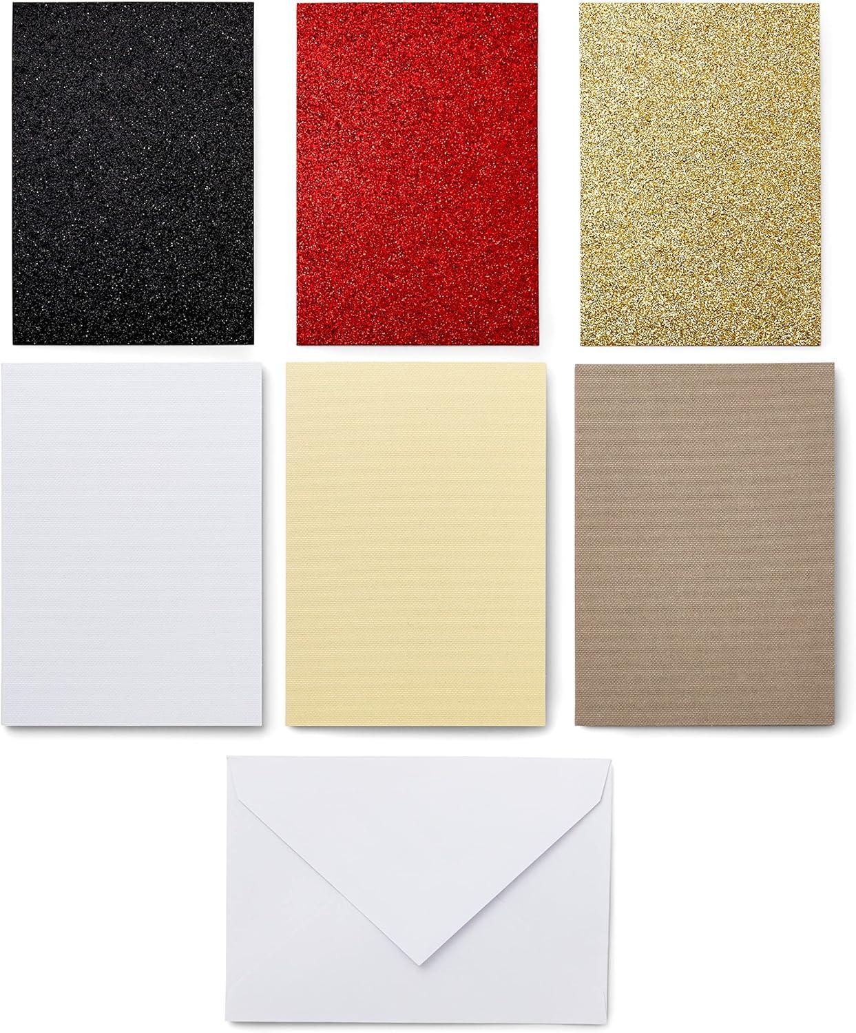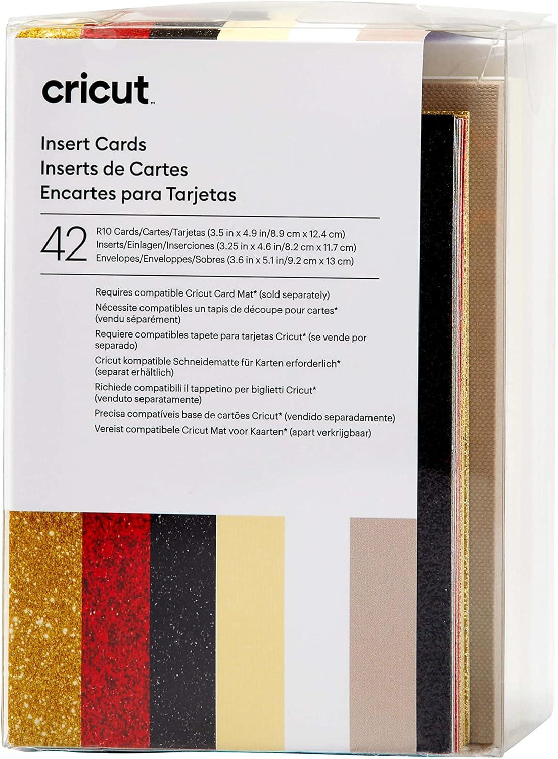 WHAT’S INSIDE – The Cricut cards pack contains 42 R10 cards in 3 colors – (14) Taupe, (14) White & (14) Cream (3.5″ x 4.9″), 42 Glitter Inserts – (14) Black, (14) Red & (14) Gold (3.25″ x 4.6″), and 42 White Envelopes (3.6″ x 5.1″)