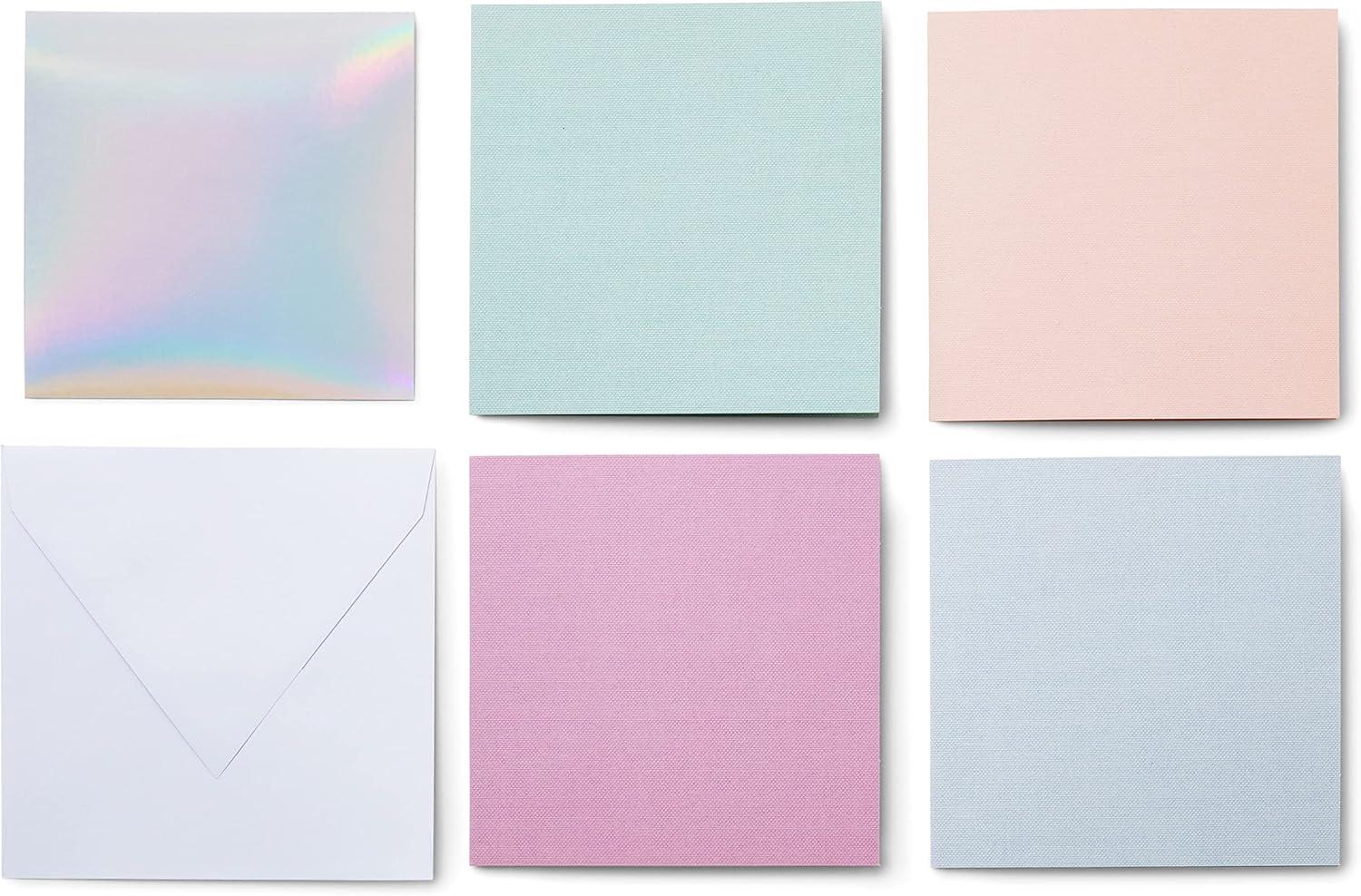 WHAT’S INSIDE – The Cricut cards pack contains 35 S40 cards in 3 colors – (9) Tulip, (9) Whispering Blue, (9) Powder Blue, and (8) Lavender (4.75″ x 4.75″), 35 Silver Holographic Scales Inserts (4.5″ x 4.5″), and 35 White Envelopes (5″ x 5″)