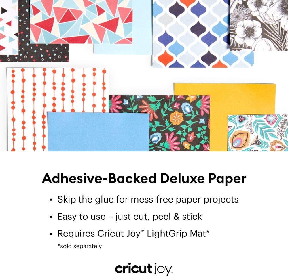 No need for glue! Cut, peel, and stick with Adhesive-Backed Deluxe Paper for Cricut Joy . With a variety of colors and patterns on the front and mess-free adhesive on the back, paper projects have never been easier. Create charming cards, pretty party decorations, and stunning scrapbook pages in a matter of minutes. For use with Cricut Joy only.