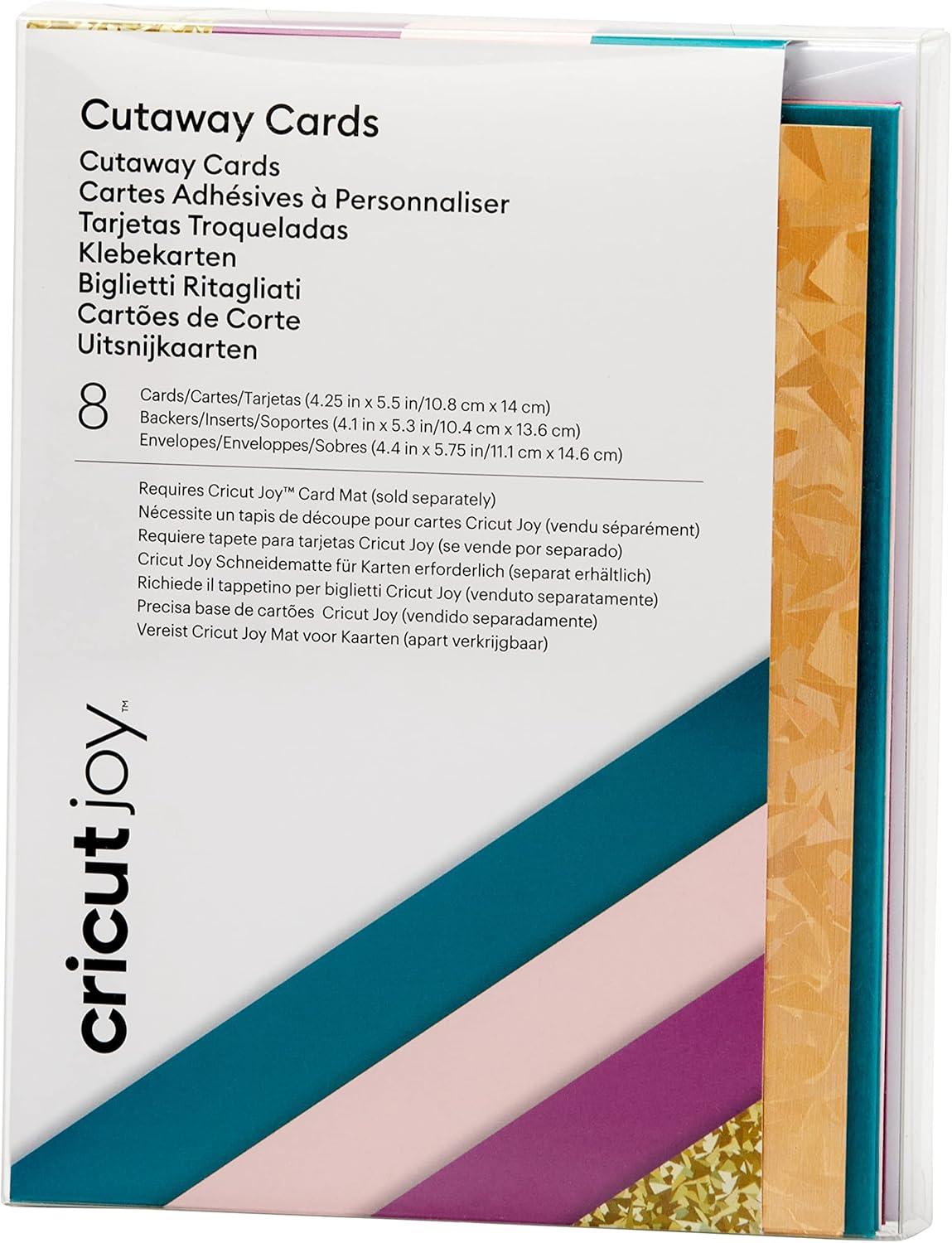 Create customizable cards every time with Cutaway Cards for your Cricut Joy™ cutting machine. Adhere a colorful backer, cut your personalized message in any design or font, weed away cutouts, and you’re set –– custom cards ready for any occasion. This pack includes envelopes and comes in a variety of colors, ready to send. For use with Cricut Joy. Requires Cricut Joy Card Mat (sold separately).