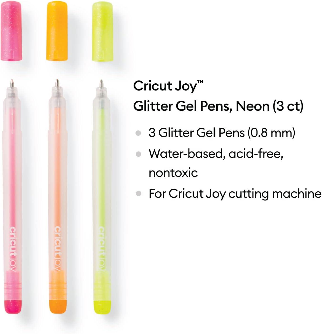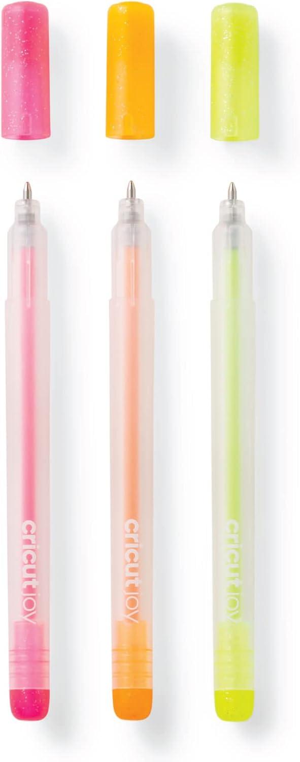 Add sparkling glitter to all your DIY projects with the Cricut Joy Glitter Pens effortlessly and in the convenience of your home. Use these 0.8mm medium point sparkle pens to create the most intricate details with their thin nip, giving you a flawless application. The eye-catching and silky smooth gel makes every project stand out with its reflective sheen. Each packet contains 3 distinct shades of Neon pens in Neon Pink, Neon Orange, and Neon Yellow to unleash the art buff in you. Use it with the Cricut Joy Cutting machines and create beautifully-styled messages, impeccable shapes and designs with a click. The water-based, acid-free, and non-toxic ink dries instantly after application and becomes permanent, giving you life-long crafts and decorations. Enhance your party and holiday invitations with these sparkly gel pens and add that personal creative touch that you always wanted. Create flawless handwritten messages, stunning shapes, and sophisticated designs on cards, paper, and decor with ease. For use with Cricut Joy Cutting Machine. With their impressive range of Cricut accessories, tools, and supplies for Cricut cutting machines, make your personal, DIY projects more fun and easy.