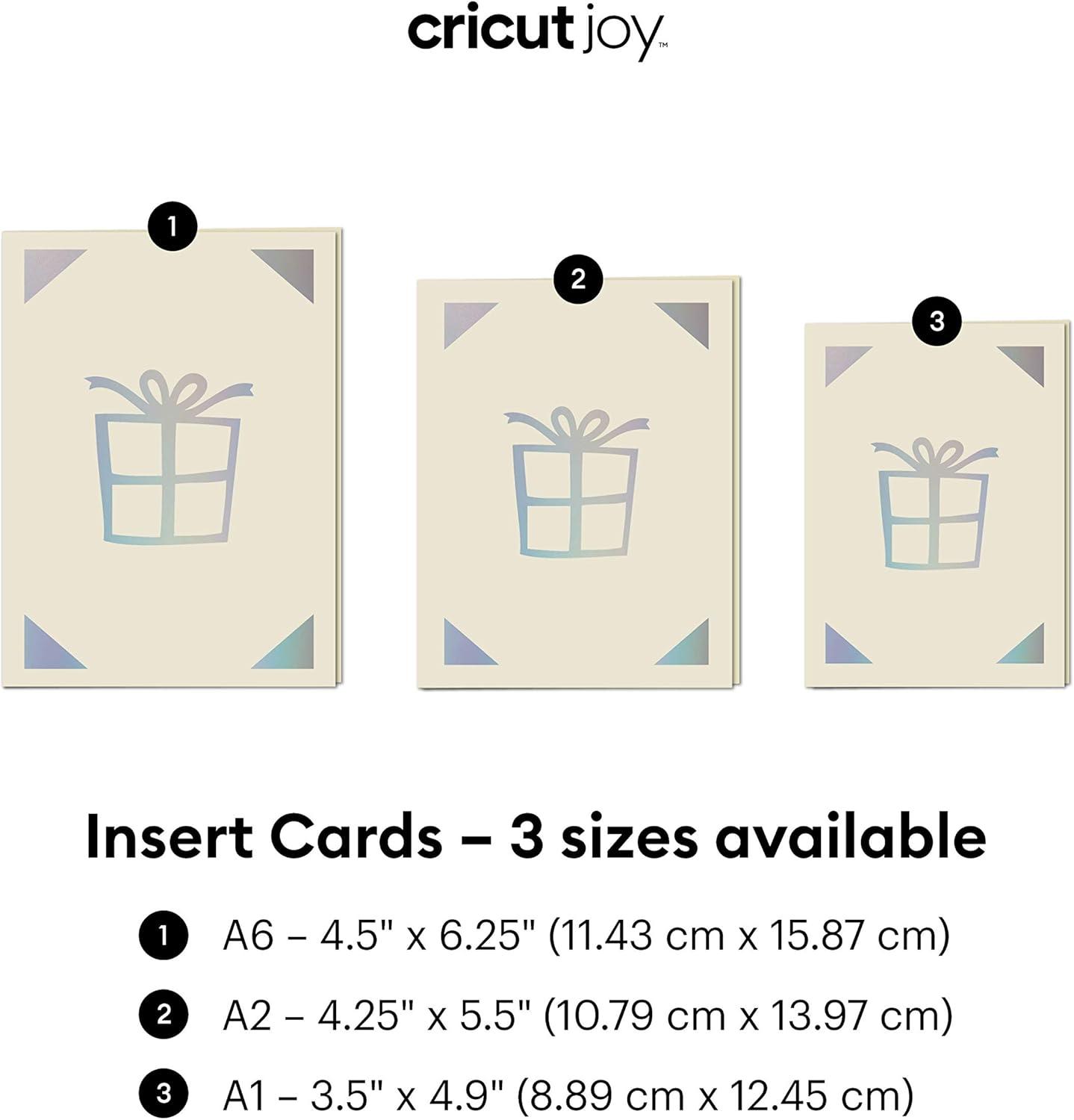 Create meaningful greeting cards in no time with Insert Cards for your Cricut Joy™ cutting machine. Design cards in a moments notice that look and feel more professional than the cards off the rack. Each cut will reveal the hue of the insert inside. The ingenious glue-free design allows for two-tone, depth-filled cards without the hassle or mess of glue. This set includes envelopes and comes in an wide range of colors to please every card recipient on your list! For use with Cricut Joy™. Requires Cricut Joy™ Card Mat (sold separately).