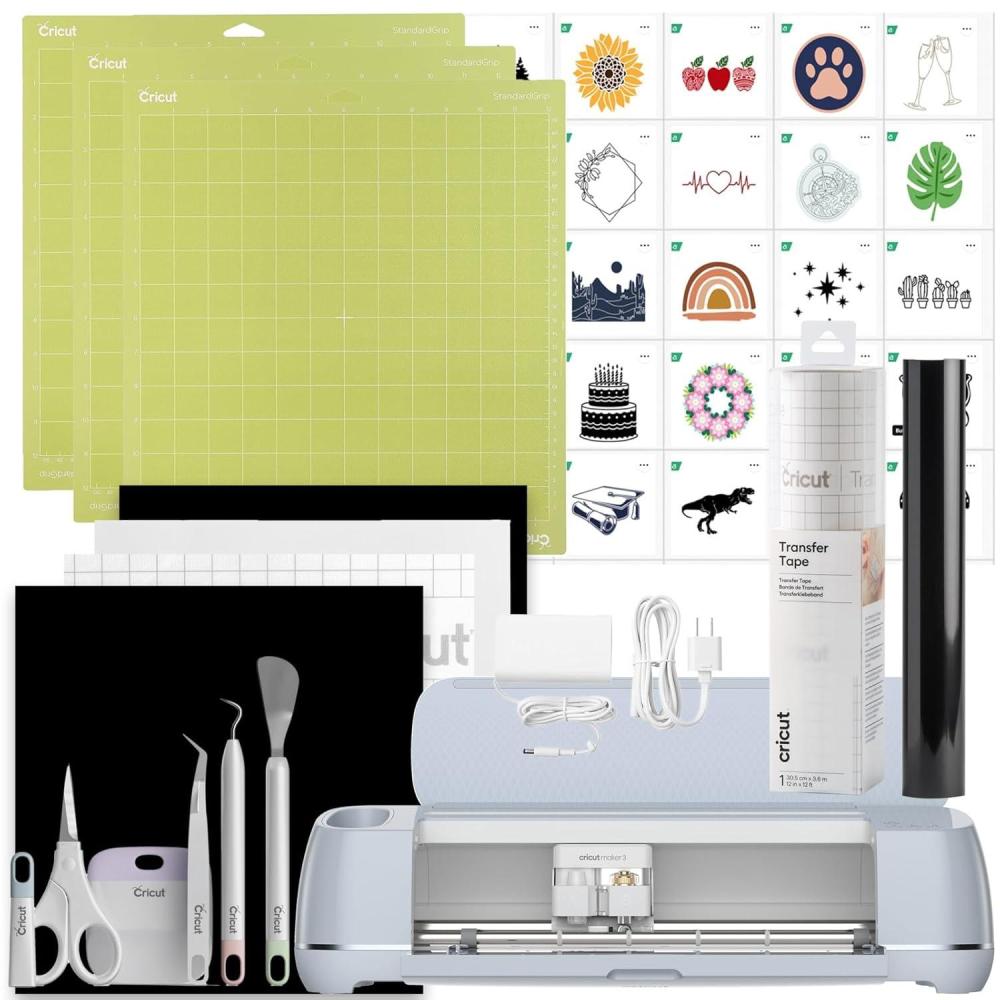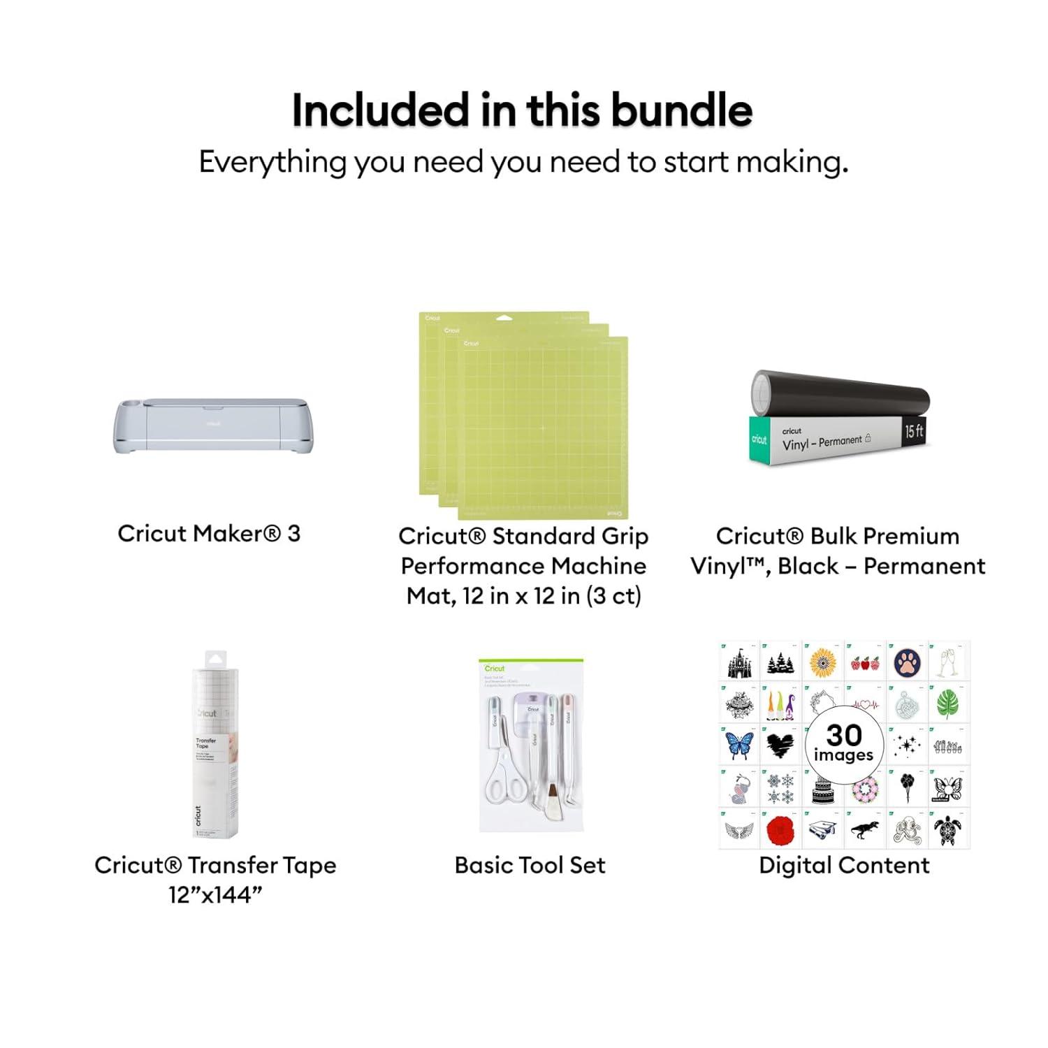 Cricut Maker 3 & Digital Content Library Bundle – Includes 30 Images in Design Space App – Smart Cutting Machine, 2X Faster & 10X Cutting Force, Cuts 300+ Materials, Blue(Vinyl Starter Kit)