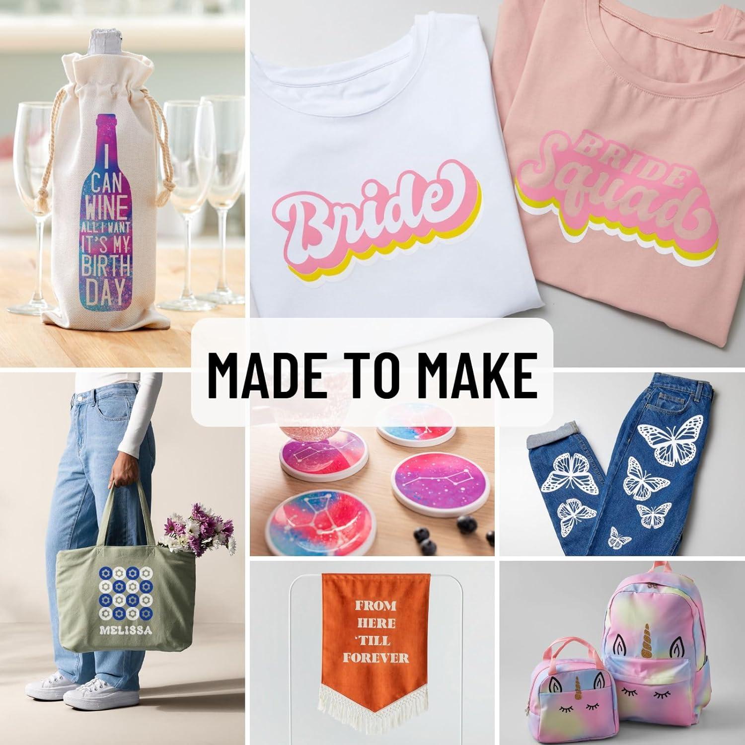 SMART MATERIALS: Personalize a little or a lot and make more in less time with Smart Materials. There's nothing additional to prep because this clever crafting material works without a machine mat, so you can just load and go. Now it's no biggie to create a shirt design on the fly or a birthday banner with big impact. Fashion a quick decal for your water bottle or decorate your laptop. Whether you're all about tiny touches or shouting from the rooftops, you've got this!