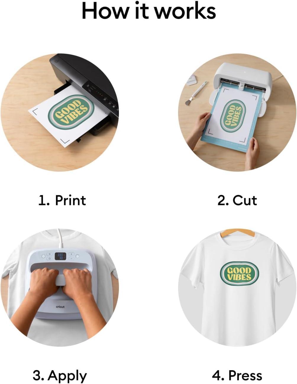Cricut Printable Iron-On for Dark Fabrics, 10 sheets (8.5″ x 11″) – Print HTV Compatible with Inkjet Printers – For Joy Xtra, Explore, & Maker Machines(Light Fabrics)