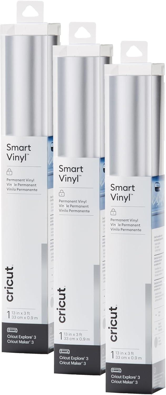 Cricut Smart Permanent Vinyl, Black, 3-Pack of 3ft Rolls (13″x36″) Adhesive Craft Vinyl – Matless Cutting for cuts up to 12ft with Maker 3 / Explore 3 Machines(Silver)