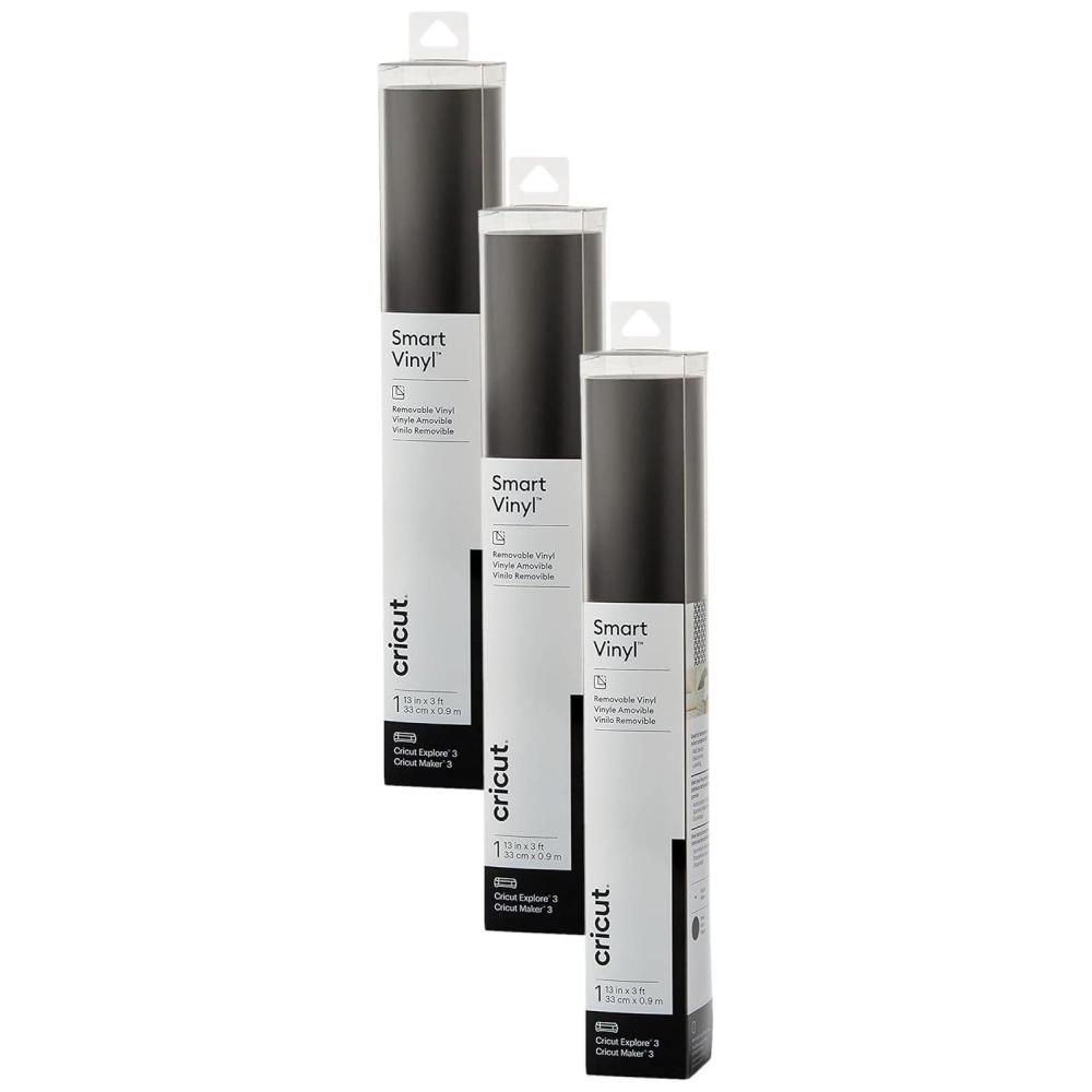 Cricut Smart Removable Vinyl, Blue | 3-Pack of 3ft Rolls (13″ x 36″) – Matless Cutting for Long cuts up to 12ft – Compatible with Maker & Explore Machines(Black)