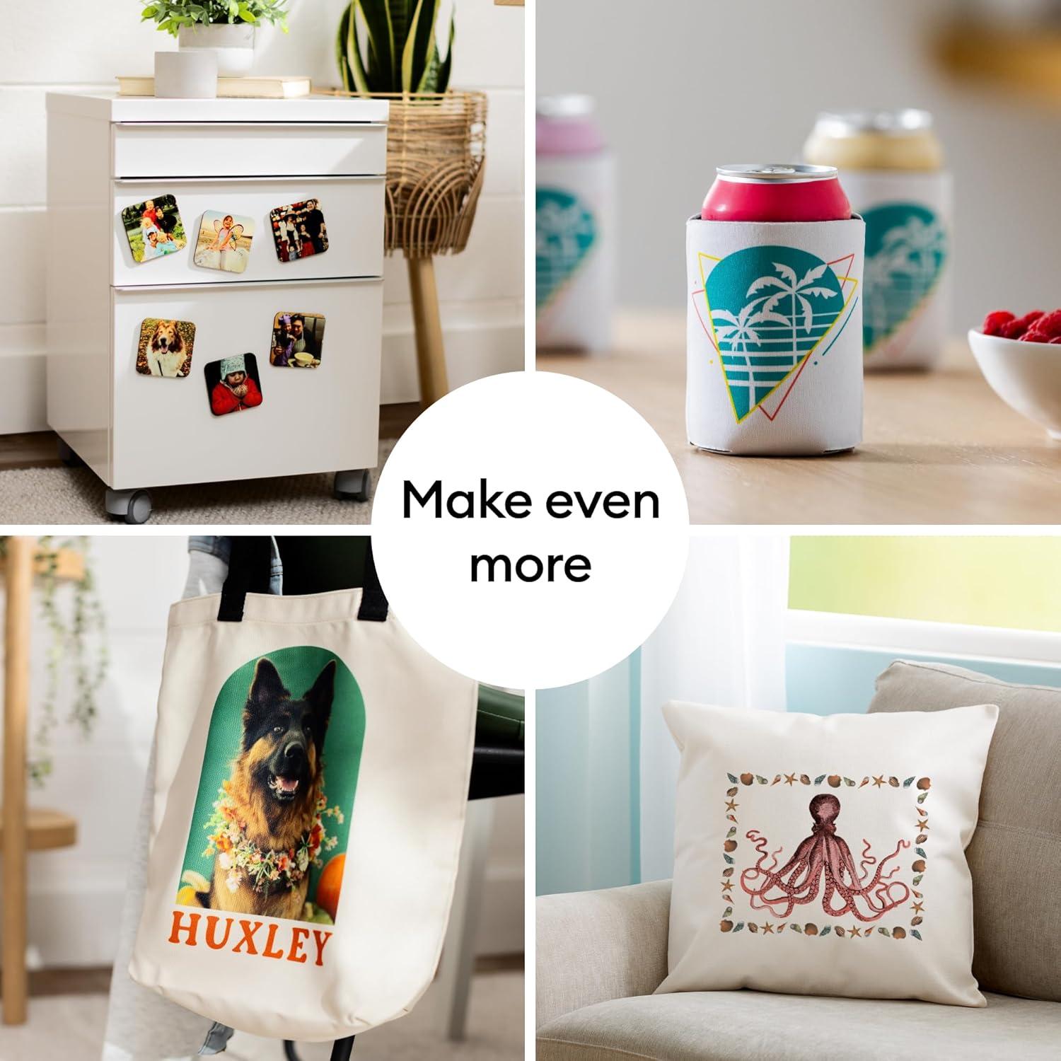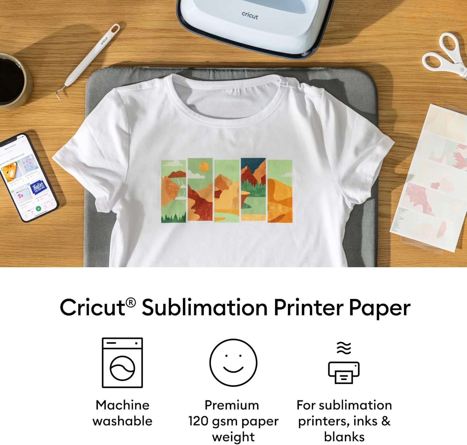 Full, multi-color heat transfer projects are easier than ever with Cricut® Sublimation Printer Paper. Designed with the ideal paper thickness to allow maximum ink holding and releasing while also being flexible enough to pass through your sublimation printer and be used on a curved blank. Simply design your idea, print it in full color on your sublimation printer, then let your Cricut cutting machine precision-cut your design. Finally, transfer it onto a mug, T-shirt, tote, and so much more with a Cricut heat press. The end result is vivid, brilliant, seamlessly smooth transfers that are peel-proof, flake-proof, and wash-proof!