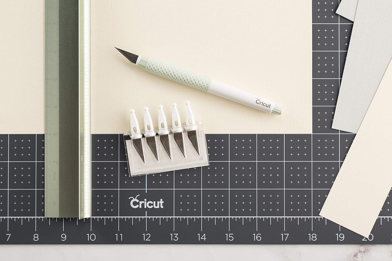 With razor-sharp edges and piercing tips, these five replacement blades designed for the Cricut TrueControl Knife cut through a wide variety of materials, including paper, cardstock, thin plastics, canvas, and more. A useful storage cartridge makes it easy and safe to track and dispose of used blades. For use with Cricut TrueControl Knife only (sold separately).