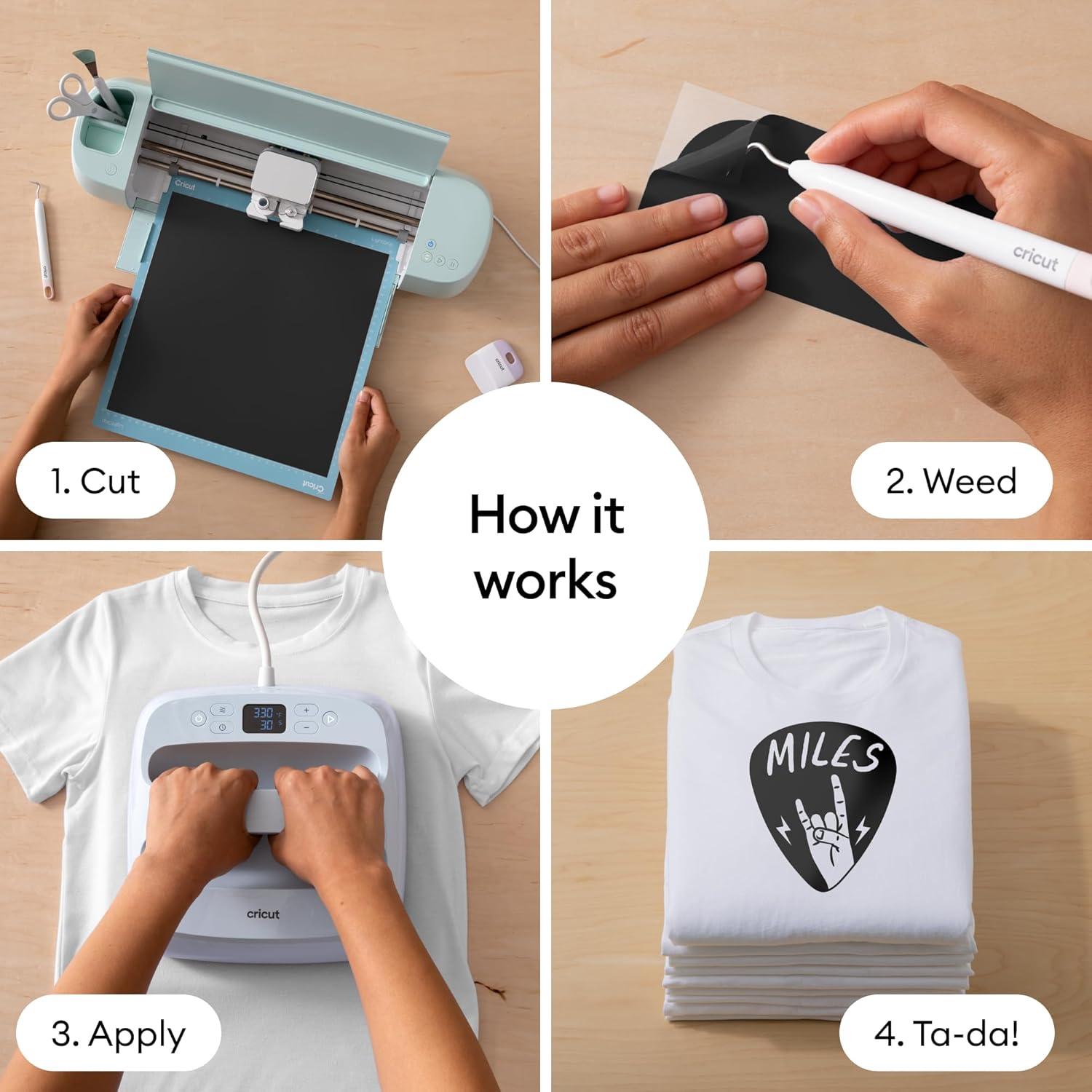 Cricut Smart Iron On for Joy Xtra Machine, White (9.5in x 4ft) – HTV Heat Transfer Vinyl – Matless Cutting for Long cuts(Black)