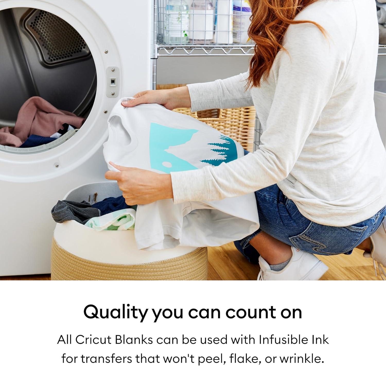 Optimized for Infusible Ink transfers. Let this plain, white youth crew-neck T-shirt be the blank canvas that inspires your next creative project. Use this compatible Infusible Ink blank as your base for vibrant, pro-quality heat transfers that last a lifetime! Unlike iron-on heat transfers or heat-transfer vinyl that adheres to your project's surface, Infusible Ink designs become one with your base material, resulting in rich, full-color transfers without edges or seams. Get a smooth, durable, premium finish that's always flake-proof, peel-proof, and wash-proof. Personalize and customize any compatible Infusible Ink blank with your name, your favorite logo, or an inspirational phrase that speaks to you. You've never done DIY like this before. How it works: 1. Choose your materials. Select Infusible Ink Transfer Sheets or Infusible Ink Pens & Markers and a compatible Cricut blank. 2. Make your design. Cut Infusible Ink Transfer Sheets or draw with Infusible Ink Pens & Markers using laser copy paper. * 3. Apply heat. Transfer design with Cricut EasyPress 2 (or heat press that reaches 400°F (205°C)). *Designs created with Infusible Ink Pens & Markers require Heat Resistant Tape.